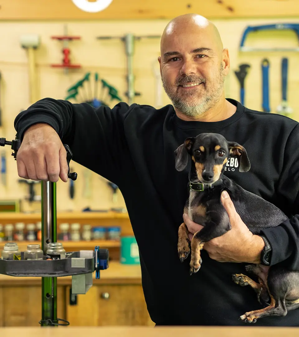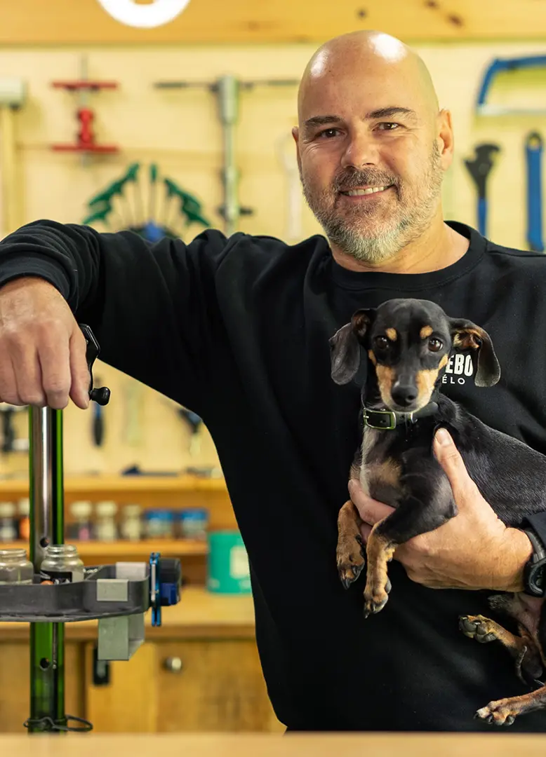 Nous sommes allés rencontrer Martin Rooseboom de la boutique Martin Rooseboom Vélo qui est située au 2200 av. du Mont-Royal Est et nous lui avons demandé de nous présenter un objet dont il ne peut pas se passer dans sa vie d’entrepreneur. Et c’est un symbole fort que Martin a choisi puisqu’il s’agit de son fidèle compagnon Chucky. Le petit teckel noir de 7 ans, accompagne régulièrement Martin dans ses journées de travail qu’il répartit entre les deux boutiques dont il est propriétaire (la deuxième boutique, qu’il a ouverte avant celle de l’Avenue, est sur la rue Ontario). Chucky est un petit vent de fraîcheur et de bonheur pour l’humeur, autant pour Martin, que pour les clients dont il est devenu la mascotte.