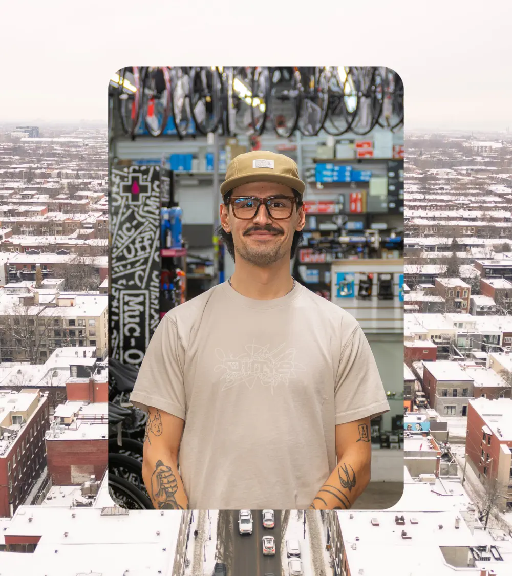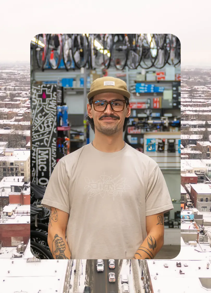 Son amour du vélo est né à l'adolescence, influencé par la culture du Fixed Gear. « Ça m'a donné la passion de démonter mon vélo, le remonter, c'est de la mécanique très simple », raconte-t-il. Pourtant, son chemin n'a pas été linéaire. Après le secondaire et quelques détours, il s'est orienté vers un DEP en électricité, travaillant ensuite deux ans dans la construction, un domaine complètement détaché du vélo, avant que l'opportunité de revenir aux sources ne se présente.