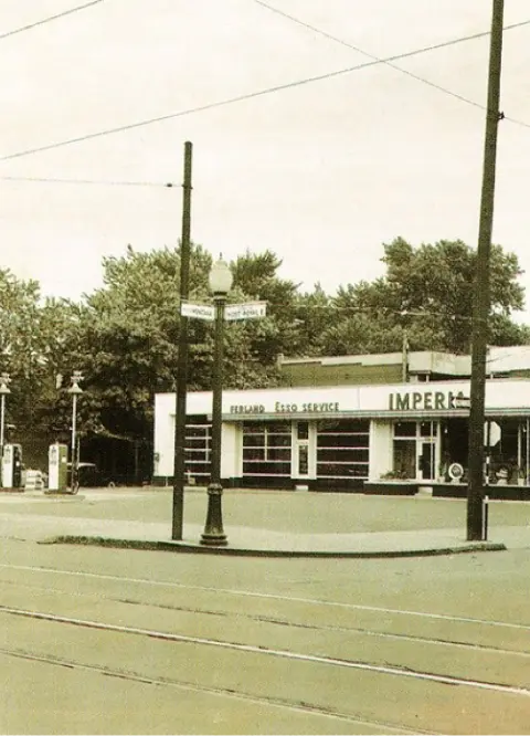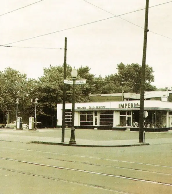 Le site de la place en lui-même n’a pas été bâtis avant les années 1930, bien que plusieurs résidences aient été construites sur les lots environnants. Le garage automobile opéré par Armand Ferland sera construit et restera actif jusqu’en 1967. Jean-Pierre Ferland, auteur, compositeur et interprète québécois, se rappel avoir travaillé dans le garage de son père durant sa jeunesse. Dans les années 50, le garage est rénové dans un style plus moderne et devient une station Esso vers la fin des années 60.