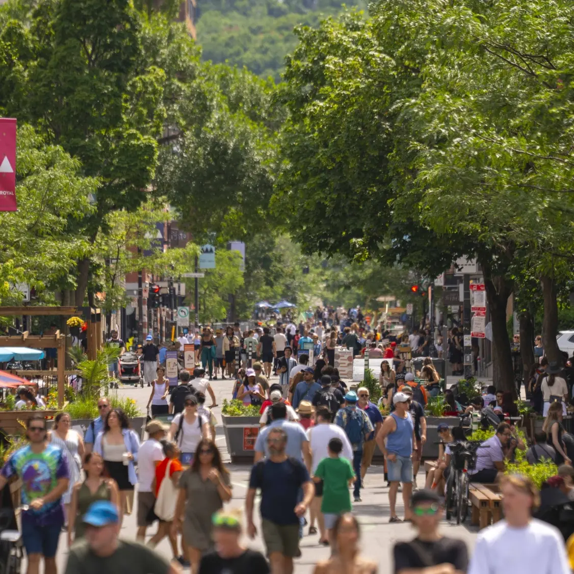 La qualité de vie s’exprime aussi dans la manière dont les gens utilisent la rue. 82 % des résidents trouvent facile de se déplacer sur le Plateau à pied, et la piétonnisation renforce cette fluidité naturelle. L’Avenue devient un lieu où l’on marche, où l’on flâne, où l’on prend le temps. D’ailleurs, 72 % des visiteurs viennent d’abord pour se balader, marcher ou faire de l’exercice, preuve que la rue piétonne répond à un besoin fondamental : celui de se réapproprier l’espace urbain.